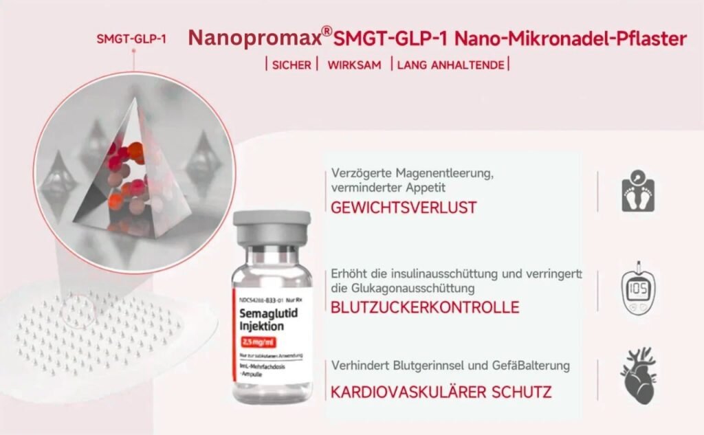من بين كل الخيارات، تبيّن أن nanopromaxلاصقة SMGT-GLP-1 النانوية بالإبر الدقيقة هو الخيار الأفضل.